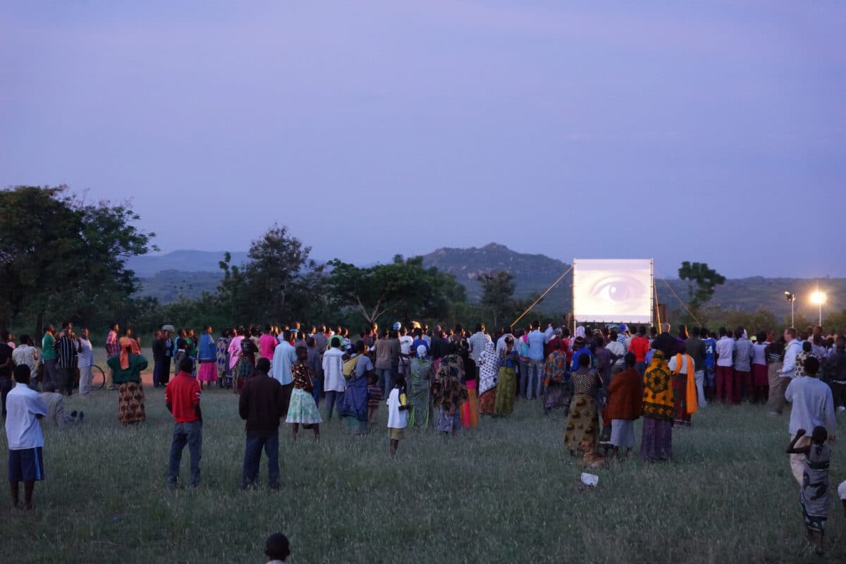 “Toen we vlak voor zonsondergang het dorp binnenreden, zagen we een hele stroom mensen richting het veld lopen waarop de film zou worden vertoond. Honderden mensen zaten te wachten op wat komen zou.”